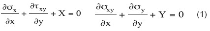 Las ecuaciones de equilibrio y de la ley de Hooke generalizada, aplicadas a problemas de esfuerzo plano en placas ortotrópicas, se reducen a las siguientes ecuaciones: