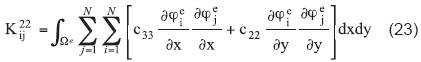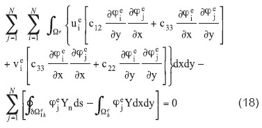 Las Ecs. (19) y (20) representan el modelo por elementos finitos de las ecuaciones de elasticidad de esfuerzo plano, (9a) y (9b).