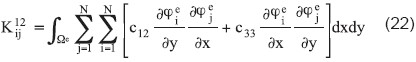Donde las constantes c11, c12, c22 y c33 vienen definidas por: