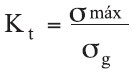 Los FTCE, Kt, se calcularon en función del esfuerzo nominal grueso: