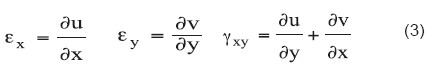 Las Ecs. (1) y (4) pueden ser expresadas en función de los desplazamientos u y v, utilizando las Ecs. (2) y (3):
