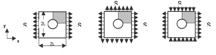 Fig. 2. Placa cuadrada con agujero circular sometida a diferentes tipos de carga