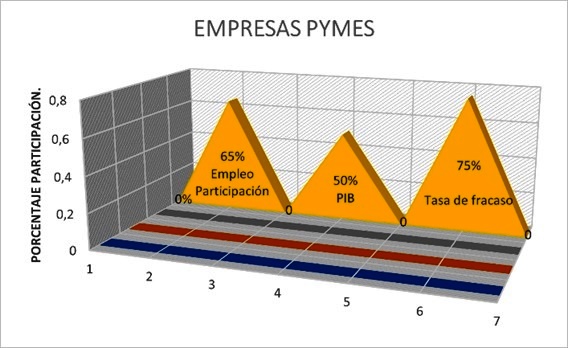 Empleo Participación: Las PYMES son responsables del 65% del empleo total. Esto significa que generan una gran parte de los puestos de trabajo en la economía.