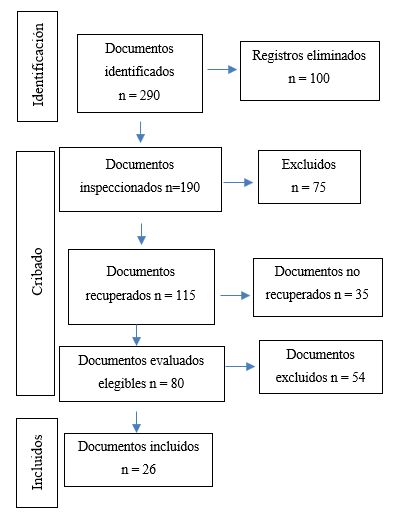 Para la ejecución de la presente revisión sistemática, se adoptó el método PRISMA (Preferred Reporting Items for Systematic Reviews and Meta-Analyses), reconocido por su capacidad para estructurar investigaciones rigurosas, reproducibles y transparentes. Esta metodología proporciona directrices precisas que permiten documentar con claridad cada una de las fases del proceso de indagación, desde la búsqueda bibliográfica hasta la selección y evaluación crítica de los estudios incluidos, asegurando así la consistencia metodológica y la trazabilidad de los hallazgos.