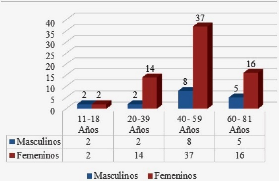 Se observó que la mayoría de las pacientes fueron femeninas, por lo que se muestra la alta frecuencia en mujeres de acuerdo con lo presentado por Yeung et al,5 Knudsen et al13 Román et al,14 y Benítez17. Específicamente en edades entre 40 y 50 años, por esta razón la evaluación en estas edades debe realizarse aún en personas sanas.
