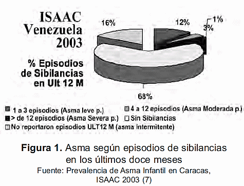 El asma es una de las enfermedades respiratorias más comunes, de evolución crónica en la infancia y su prevalencia está aumentando; su morbilidad es muy alta, genera gran cantidad de hospitalizaciones, costos enormes, no se cuenta con tratamiento curativo. La Organización Mundial de la Salud (OMS) calcula en la actualidad 300 millones de pacientes en el mundo. En el 2005 fallecieron 255.000 personas. El Estudio Internacional sobre Asma, Alergias en la Infancia (ISAAC) basado en interrogatorio, es la principal fuente de investigación mundial sobre prevalencia del asma, y plantea que la prevalencia depende de cada lugar del mundo que se evalúe. En su fase tres participan países latinoamericanos y mide la prevalencia global en menores de catorce años. La información se obtiene en relación a la presencia de sibilancias en los últimos doce meses y la prevalencia de síntomas de severidad. En Venezuela, 32% de los menores de 14 años reporta haber presentado alguna vez en su vida episodio de asma o sibilancias. Esto nos ubica entre los países con mayor prevalencia de esta enfermedad en Latinoamérica. Se señalan datos epidemiológicos de morbilidad y mortalidad en Venezuela. Factores de riesgo son identificados en aquellos niños que parecieran tener asma persistente: manifestaciones alérgicas, asma en los padres, sibilancias no acompañadas de catarro común. Estudios epidemiológicos sugieren fenotipos con condiciones heterogéneas que siguen una vía común caracterizada por obstrucción bronquial recurrente. Tres de esos sibilantes transitorios precoces, los preescolares sibilantes no atópicos y los asmáticos/sibilantes atópicos.
