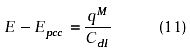 if Cdl is considered constant in the potential range studied, the potential diference E-Epzc is given by: