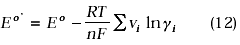 According to Figure 4A the equilibrium potential of the hexacyanoferrate couple shifted to more positive potential as the concentration of supporting electrolyte was increased. This mean that for building Tafel plots, the overpotential must be calculated taking into account the formal potential (Eo), which is dependent on the medium since it includes the logarithmic activity coefficient terms (gi) as well as the standard electrode potential (Eo), according to the following relationship: