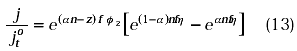 If the overpotential (h) is calculated as (E - Eo) and this data and ø2 are taken from Figure 9A, the behavior of the ratio between the current density and the true exchange current density can be evaluated for the hexacyanoferrate couple at conditions where supporting electrolyte is present or absent using the equation: