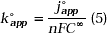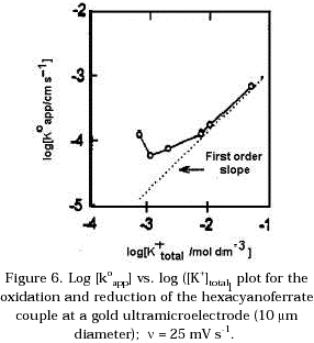 . Where joapp is the exchange current density and C¥ is the concentration of the hexacyanoferrate couple in the bulk solution. A minimum in the apparent rate constant koapp is found when the total concentration of K+ is between 1x10-3 to 3x10-2 mol dm-3.