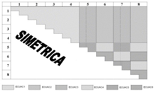 Las 6 ecuaciones características que se formularon generan los 136 términos de la matriz de rigidez, el encontrar cada una de ellas depende del término de la matriz que se quiere encontrar, figura 3.