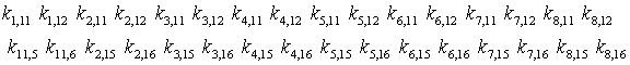 Ecua1.-Interacción entre nodos esquinas usando el índice (j) como el que determina los 36 términos de la matriz de rigidez para ésta ecuación.