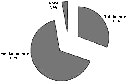 Igualmente se consideró lo relativo a la información académica recibida durante sus estudios de pregrado, para saber si cubrió sus expectativas que tenia al inicio de la carrera, y 19 (30.2%) señalaron que totalmente; 42 (66.7%) medianamente y 2 (3.2%) poco (Figura 6). Aunado a ello, la información académica les suministró las herramientas básicas para ejercer su profesión, como suficiente para 25 (39.7%), medianamente suficiente para 32 (50.8%) e insuficiente para 6 (9.5%); siendo insuficiente en soporte nutricional 8 (12.7%), tecnología de alimentos 8 (12.7%), nutrición clínica 7 (11.1%), investigación 6 (9.5%), gerencia 6 (9.5%), alimentación institucional 6 (9.5%), nutrición en deportes 6 (9.5%) y otras áreas 13 (20.6%).