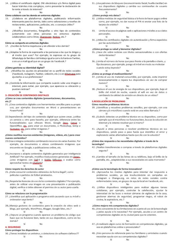 | Alfabetización informacional y de datos | Comunicación y colaboración | Creación de contenidos digitales | Seguridad | Resolución de problemas | |||