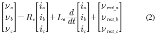 El modelo en coordenadas "abc" del puente rectificador se observa en (2) y (3) [1]: