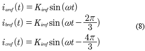 Para la aplicación del control de corriente PI y PI difuso al rectificador síncrono trifásico, la corriente de línea inicialmente expresada en coordenadas "abc" es transformada a coordenadas "dq" (Park, 1929). Las componentes de corriente id e iq tienen valores constantes en estado estacionario, ya que el sistema de referencia está rotando en sincronía con