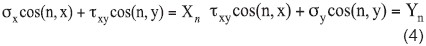 El espesor de la placa se define por h; Xn, Yn expresan las componentes de las fuerzas distribuidas en los bordes por unidad de área; X, Y representan las fuerzas del cuerpo por unidad de volumen, siendo Zn = Z = 0 de acuerdo a las condiciones anteriormente establecidas.