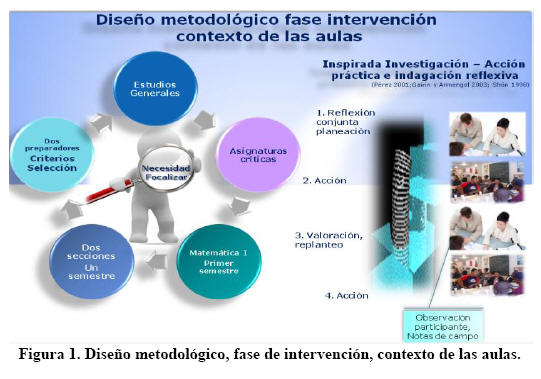 En la fase de intervención, se tomaron en cuenta los puntos fuertes y débiles del programa identificados en la fase descriptiva previa y se jerarquizaron las prioridades de acción, abordando cuestiones neurálgicas como la actualización y adecuación de la reglamentación del programa, su funcionamiento administrativo, la formación de los preparadores y la construcción progresiva de una práctica reflexiva con dos preparadores en los salones de matemática I. El trabajo realizado con los preparadores en el aula, para construir una estrategia de clase colaborativa, implicó una metodología de trabajo inspirada en la investigación acción y constituyó el epicentro de este esfuerzo investigativo, nivel operacional al cual dedicaremos la atención en el presente artículo.