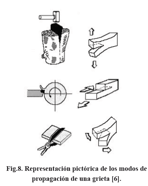 En la Fig.8 se tiene una presentación pictórica de estos modos de propagación de grietas [6].