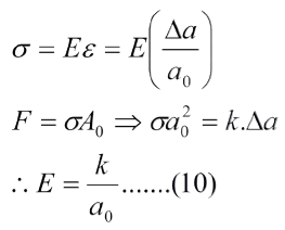 Para establecer una relación entre k y E se puede pensar en un cubo de lado a0 con átomos en los vértices, de modo que el área de una cara es A0 y la fuerza F está actuando normalmente. Así tenemos: