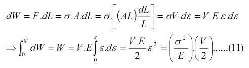 Consideremos un ensayo de tracción en el que es válido la constancia de volumen, de modo que V=A0.L0 = A.L = Cte., donde A0, es el área transversal inicial; L0 la longitud calibrada inicial; A y L las mismas magnitudes un instante cualquiera durante el ensayo. Al producirse un desplazamiento dL bajo la acción de la fuerza F, el material absorbe una energía dW, de modo que: