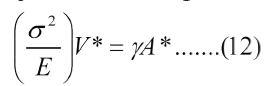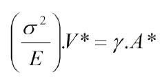 2. En una fractura por clivaje se establece una correspondencia entre el volumen del sólido de energía elástica, representado por un paralelepípedo cuyas bases son dos planos de clivaje contiguos, y el área de un plano intermedio que representa la sección de los enlaces atómicos,, equivalente a uno de clivaje, de modo que ,en el balance de energía, si "V*" es el volumen de energía, "A*" el área del plano de clivaje asociado, sección principal del sólido, y "g" la energia superficial, se tiene: