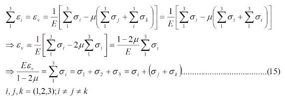 En la ec. (16a), "εv = Σεi" es la deformación volumérica y "c