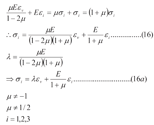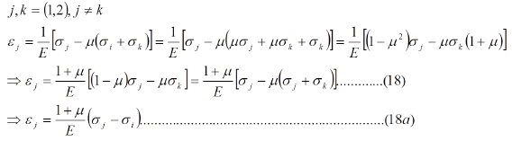 En un análisis experimental de tensiones lo que se mide son las deformaciones, y a través de éstas inferir sobre el estado de esfuerzos, por ello es conveniente expresar los esfuerzos en función de las deformaciones. Usemos el cálculo tensorial por comodidad y hagamos una sumatoria en la ec. (14):