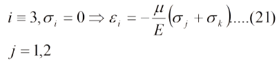 Obsérvese que aun cuando el esfuerzo en la dirección del espesor es cero, la deformación no lo es, viene dada por la ec. (21), lo cual genera un estado tridimensional de deformaciones dado por las ecs. (21) y (22).