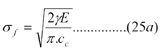 La ec. (25) es una ecuación de crecimiento de grieta elástica y alcanzado el tamaño crítico se produce la fractura, esto es: