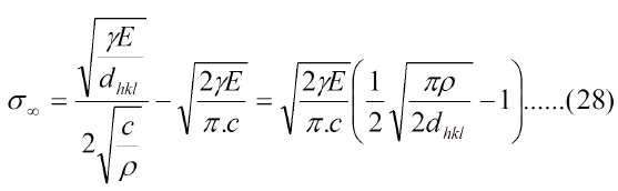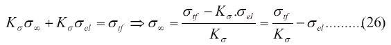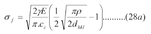 La ec. (24) representa el esfuerzo de traccion, asociado a la energia elastica almacenada por ausencia del material de la grieta. Esta afectado por el factor concentrador de esfuerzo Ks. Cuando se aplica un esfuerzo remoto s¥ este se ve afectado por Ks. Para que la grieta crezca, la suma de ambos debe ser igual al esfuerzo de fractura teorico. Asi tenemos: