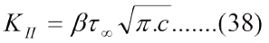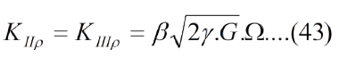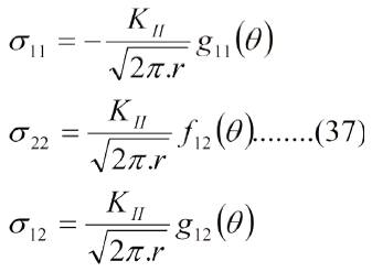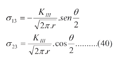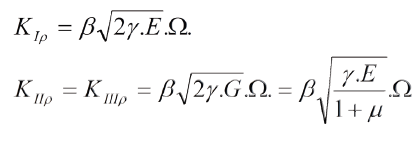 Atendiendo a estos modos de propagación, al factor K se le designa por KI, KII y KIII respectivamente. Las ecs. (30) a 34 son para modo I. Las ecuaciones que se maneja para los modos II y III son las siguientes [6]: