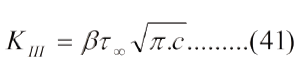 Comparando las ecs. (40) y (40a) y haciendo σ∞= τ∞ (esfuerzo de corte remoto) e incorporando el factor β tenemos: