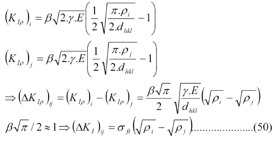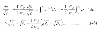 Por tanto -dρ/dN sigue un comportamiento similar a dc/dN. La ec (46) permite obtener una relación muy útil para dos instantes ti y tj de la existencia de cualquier grieta, siendo tj > ti, la cual es: