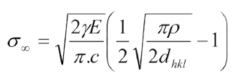 Donde "dhkl" es distancia entre los planos de clivaje. De este modo, grietas de tamaño subcrítico producen catástrofes con esfuerzos muy pequeños.