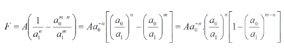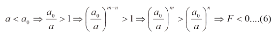 Es interesante conocer los valores de F para a<a0, para ello consideremos las ecuaciones (1) y (3),