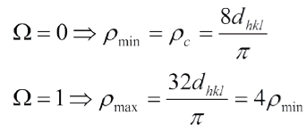 Este factor de corrección establece un intervalo de valores ρ: un ρmáx para el cual Ω =1 y un ρmin para el cual Ω =0, en materiales de fractura frágil. De modo que: