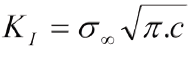 Donde σ∞ es el esfuerzo remoto para que una grieta de tamaño "2c" (dos puntas) o "c" (una punta) y una punta de radio de curvatura ρ se propague. El factor de corrección, adimensional, viene dado por: