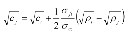 4. A partir del enfoque dado en 2, el esfuerzo elástico introducido también es afectado por el factor concentrador de esfuerzos en la punta de la grieta, al igual que el esfuerzo remoto, lo cual, manejado apropiadamente, conduce a un factor de corrección de la ecuación de Alan Arnold Griffith. Esta ecuación es: