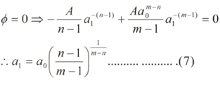 En la Fig.1 se puede observar que para distancias interatomicas muy grandes, las fuerzas y la energia potencial de interaccion se reducen a cero. Adicionalmente, existe un valor "a0", dado por ec. (3) para el cual la energia de interaccion es minima y representa la distancia de equilibrio; tambien existe un valor a1<a0, para el cual ɸ=0, lo que permite escribir: