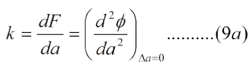 Se puede observar de la Fig. (1a) que, para un desplazamiento infinitesimal alrededor de a0 la curva es aproximadamente lineal, por lo que se puede escribir, como una primera aproximación, F≈k.Δa, donde k es la pendiente de la recta y Δa=a-a0 es el desplazamiento, siguiendo así un comportamiento hookeniano. La Fig. (1b) ofrece otro enfoque, como se muestra a continuación: