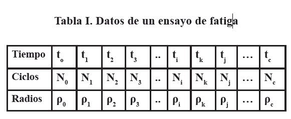 Para saber si se está en la región I, II o III consideremos un experimento de fatiga en el que se mide progresivamente el radio de curvatura y se tabulan como se muestra en la tabla I.