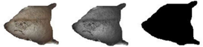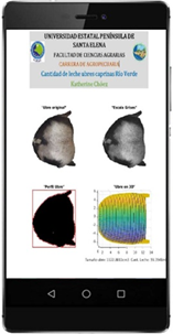La Figura 5, representa el procedimiento llevado a cabo en el procesamiento de imágenes en MATLAB para la obtención de volúmenes y cantidad de leche mediante el teléfono celular, se observa la transformación de la imagen original de la ubre a escala de grises, pasando por un perfilamiento de la imagen para finalmente obtener la simulación tridimensional de la ubre, junto con ella se obtiene el volumen y la cantidad de leche, llegando a obtener resultados muy similares a los resultados obtenidos en la aplicación PC.