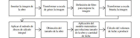 Para el desarrollo de la interfaz gráfica y aplicación en MATLAB, que permite la estimación de leche producida en cabras, utilizando procesamiento digital de imágenes se desarrolló un programa con extensión .m cuyo funcionamiento se detalla a continuación (Figura 4).