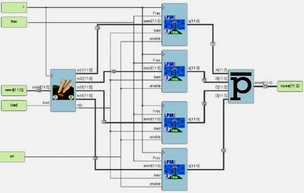 Frec: This parameter configures the speed of the generated random sequence, also known as the sampling period of the LFSR.