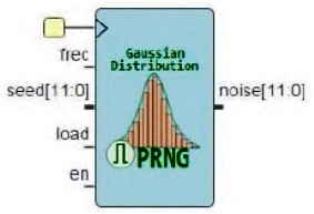 Fig. 3 Implementation of the block for generating random sequences with Gaussian distribution described in Verilog language under the Icestudio environment.