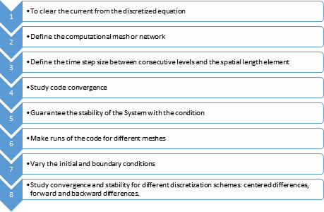 Methods are available to evaluate the convergence of a code when analytical solutions are known. In this study, the electrical parameters are considered to achieve a sufficiently refined mesh, thus allowing code convergence in as few iterations as possible. To achieve this, the CFL condition is applied to ensure that the mesh will enable us to obtain a solution closer to reality.