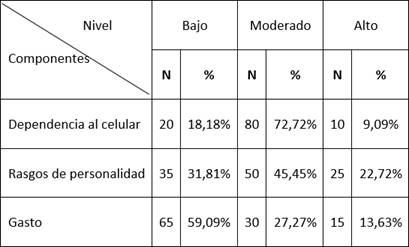 Se reflejan dentro de la siguiente tabla los principales resultados obtenidos a nivel de dependencia a los celulares de los estudiantes.