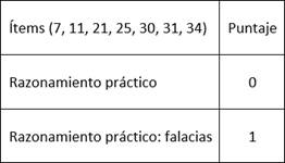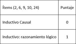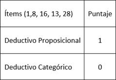 Los ítems correspondientes a cada habilidad miden los aspectos más relevantes en ella, puesto que discriminan claramente las diferentes capacidades, cuya medición abordamos desde esta prueba. Se encasillan los resultados de los ítems en categorías y así conocer resultados más específicos. Así, se evidencia en la tabla 2, los ítems que correspondían a la habilidad de deducción: