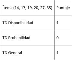 La escala de inducción refleja los siguientes puntajes, como se puede observar en la tabla 3: